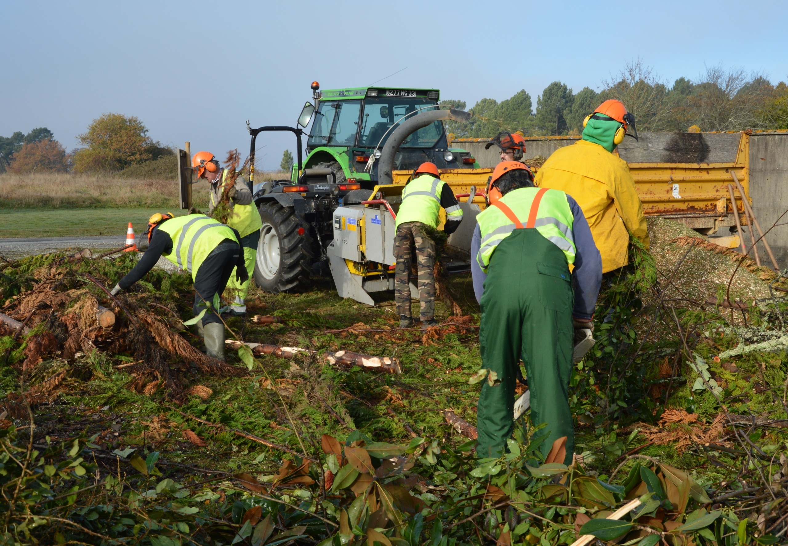 Le matériel mobilisé était important : tracteurs, broyeur, camion plateau, remorques (dont plusieurs ont été remplies).