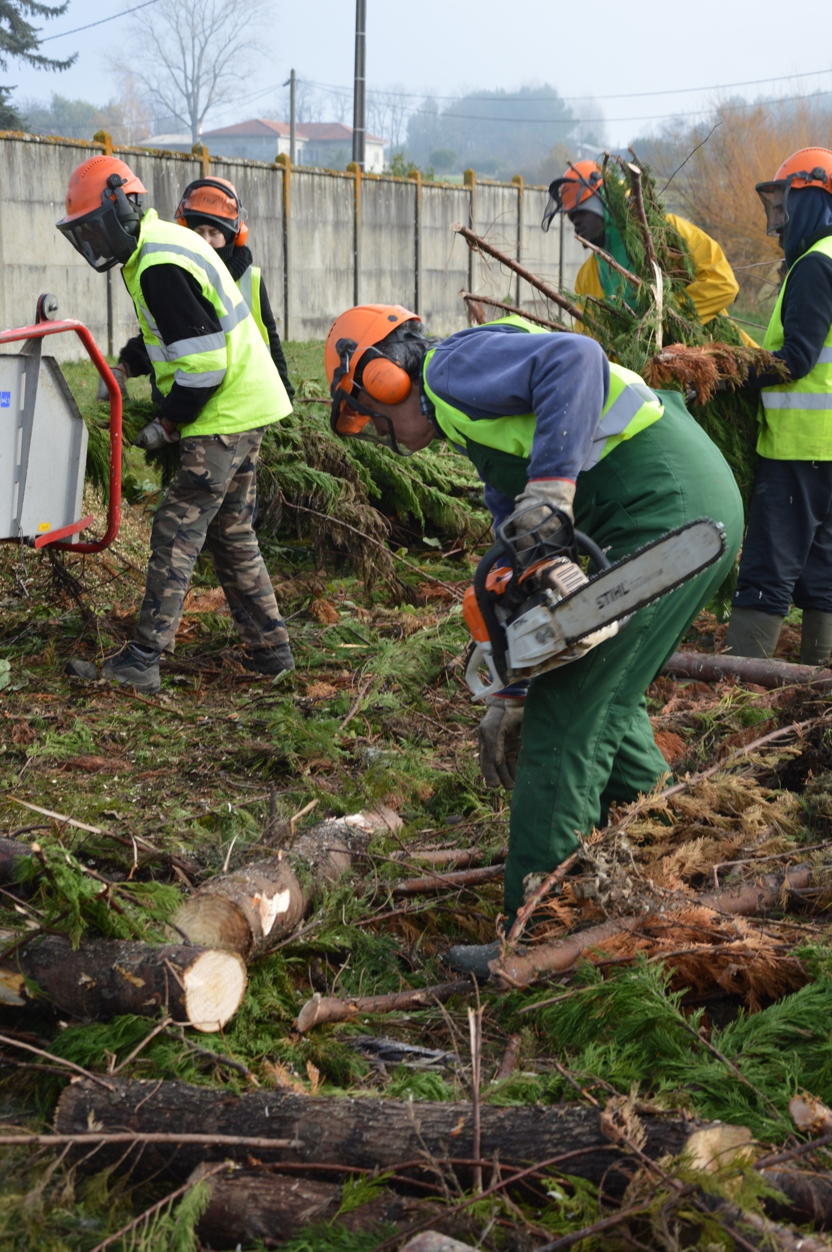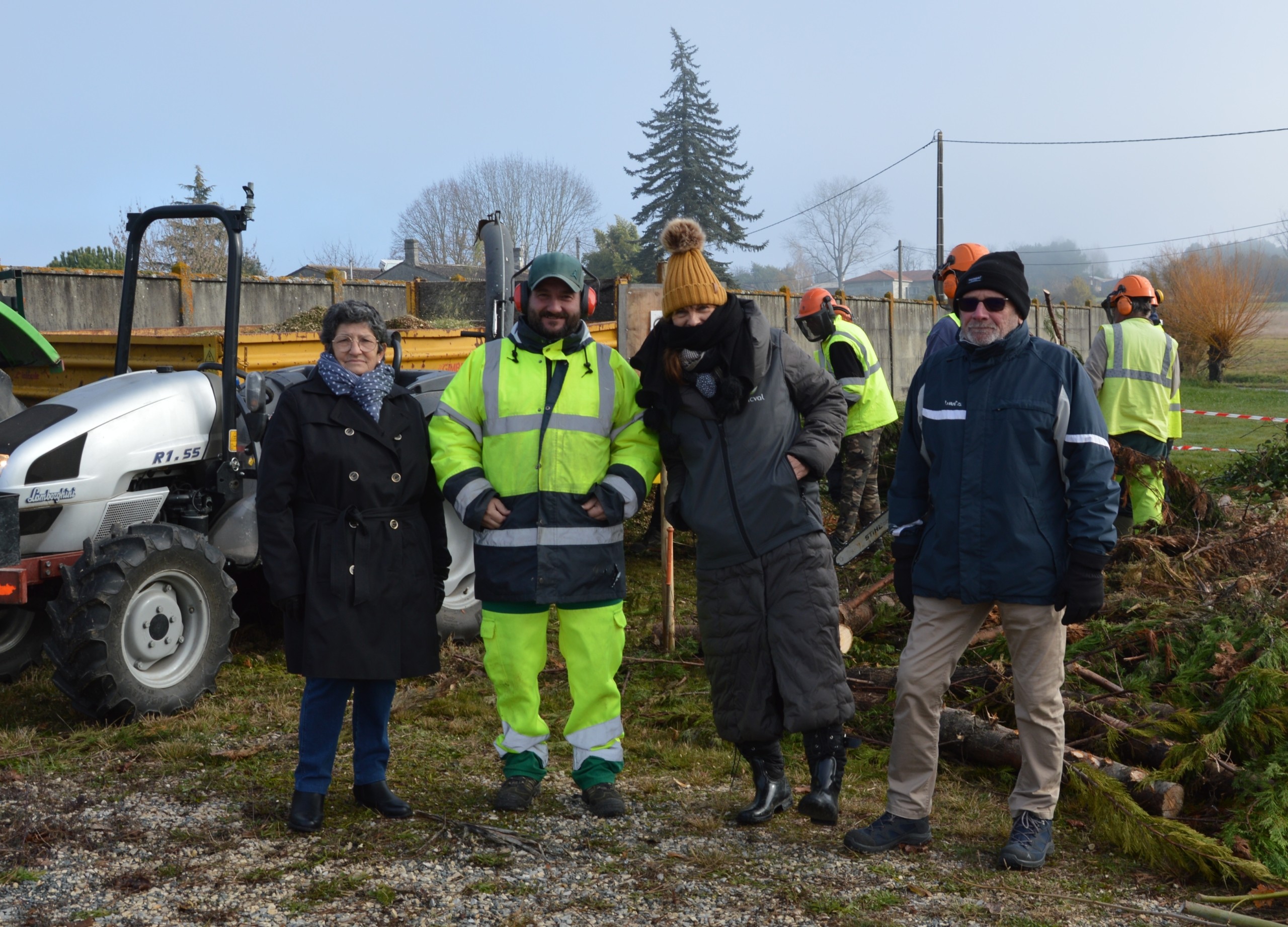 Le SMICVAL, représenté par Guislaine Laroche, avait mobilisé une belle équipe qui s’est attelée à la tâche avec entrain dès le matin. Certains tronçonnaient les branches un peu grosses, d’autre alimentaient le broyeur, les chauffeurs faisaient des rotations avec les remorques.
