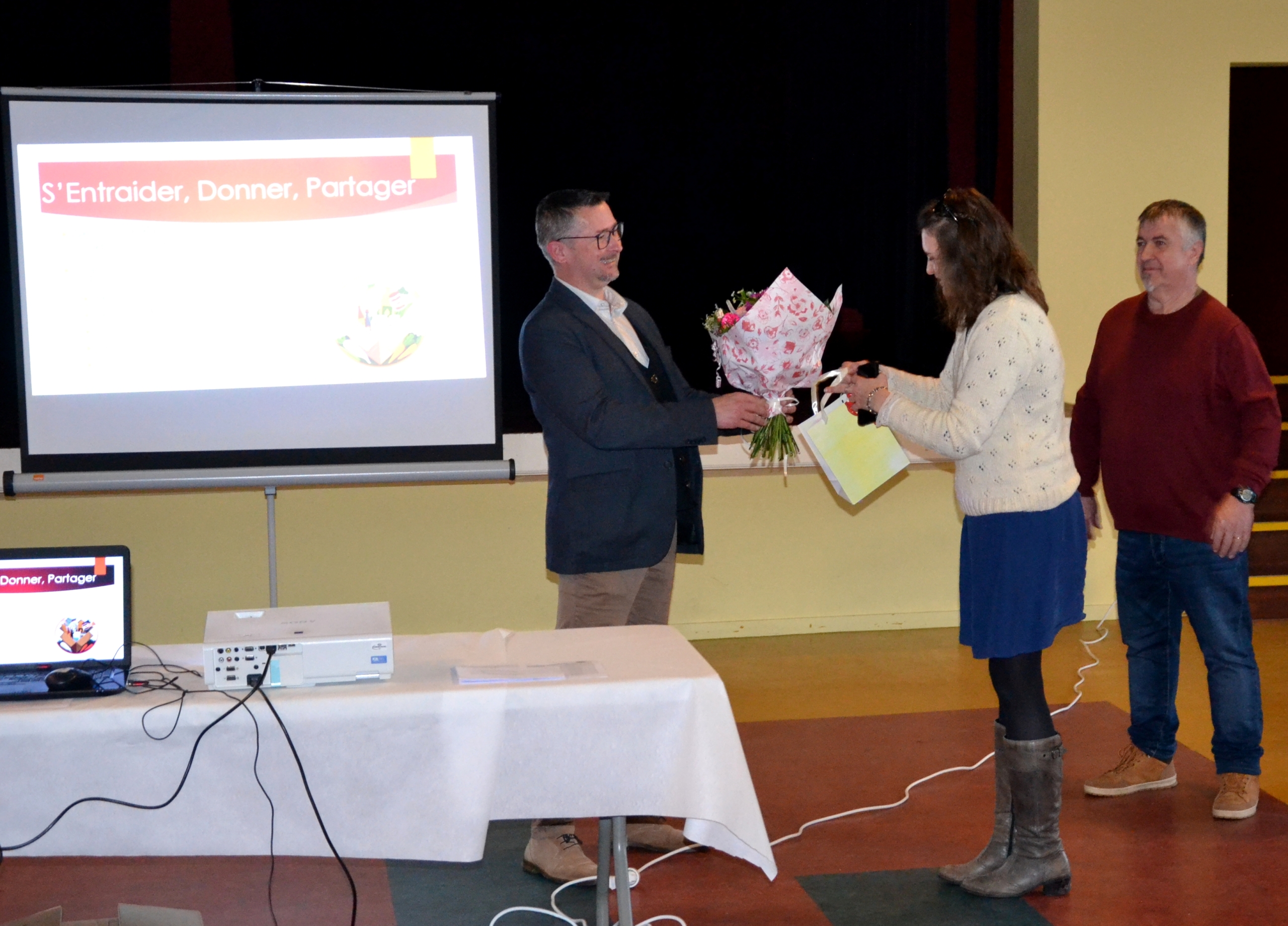Un bouquet de fleurs a été remis à Justine, cheville ouvrière de cette épicerie solidaire, qui nous quitte prochainement.