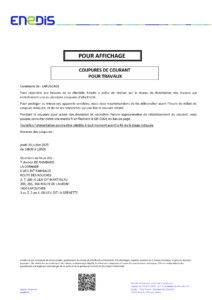 COUPURES DE COURANT POUR TRAVAUX LE 24 JUILLET 2025